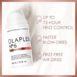 La crème de coiffage sans rinçage OLAPLEX N°6 est une formule concentrée adaptée à tous les types de cheveux, y compris ceux ayant subi une coloration ou un traitement chimique. Elle renforce, hydrate, lisse et accélère le temps de séchage, tout en offrant jusqu’à 72 heures de protection contre les frisottis et les mèches rebelles.