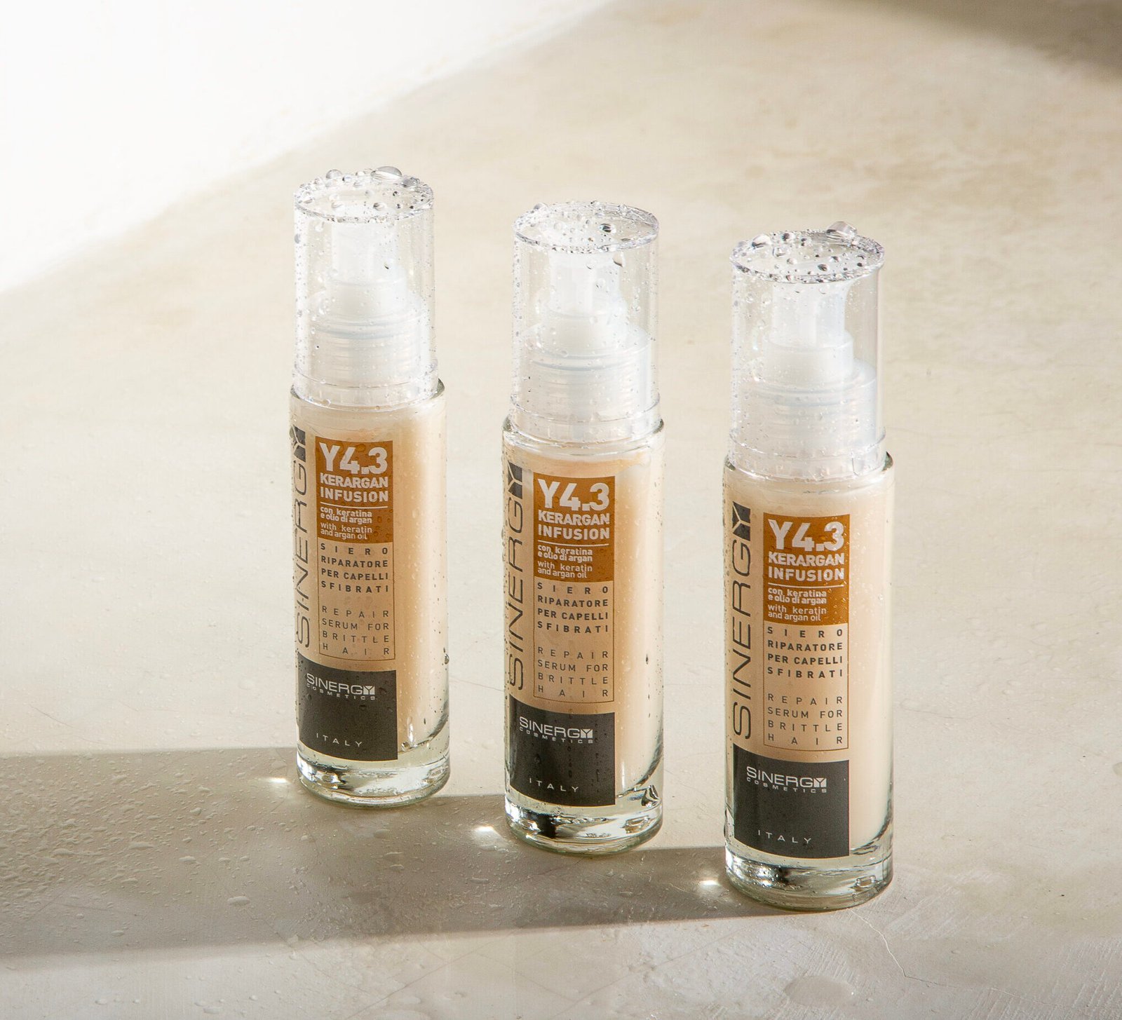Y4.3 Sérum Sinergy à la kératine, agissant en profondeur pour réparer les cheveux endommagés.